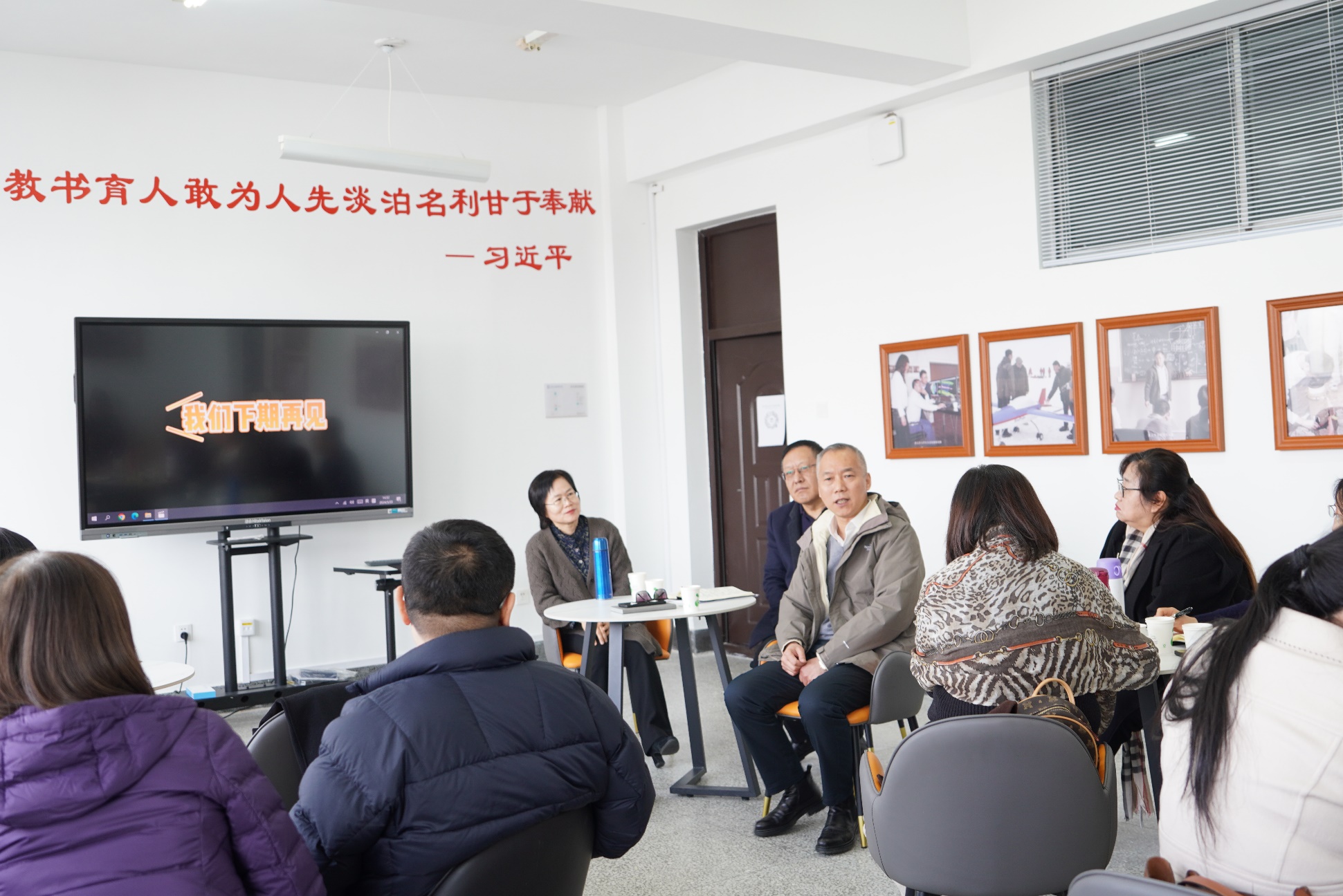 院长黄忠民代表学院感谢了文老师的分享,他结合自身的学习和工作经历指出,兴趣是最好的老师,内在动力比任何外在的鞭策都更加有效和持久,教师要特别重视对学生学习兴趣的培养。他指出教育是培养和塑造人的一项伟大事业,是面向未来的事业,希望教师们能保持积极的工作热情,持续学习,不断提升教学水平。